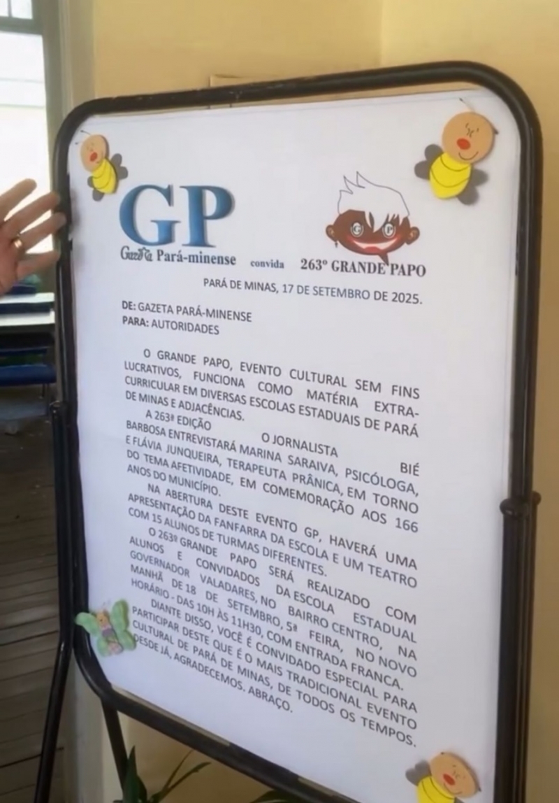 A afetividade está presente em todas as áreas da vida: * na sociedade, ela é a base da convivência, para construir comunidades mais justas e acolhedoras; * no ambiente de trabalho, a afetividade favorece a comunicação, reduz conflitos e potencializa a criatividade; * nas relações amorosas positivas, ela contribui para diminuir o estresse, fortalecer a imunidade e prevenir adoecimentos; * entre profissionais da saúde e pacientes, a afetividade melhora os tratamentos, gerando mais humanização ao atendimento; * no campo espiritual e existencial, ela se traduz na capacidade de amar, perdoar e valorizar a vida; e * no âmbito educacional, está provado que os professores que estabelecem vínculos positivos com os alunos estimulam a motivação, a autoconfiança e a curiosidade! O Grande Papo, realizado das 10H às 11H30, foi realizado pela 1ª vez na EE Governador Valadares, que estava toda decorada para receber este evento GP. Para debater o tema, foram convidadas a psicóloga Marina Saraiva e a terapeuta prânica Flávia Junqueira. Mas o evento também contou com as presenças do vereador Geraldinho Cuíca, representando a câmara municipal, do coordenador do Sine local, José Alves da Silva Neto/Zezinho e da psicóloga Isadora Lopes, representando a secretaria de educação, a quem o GP Jornal, mais uma vez, agradece.
